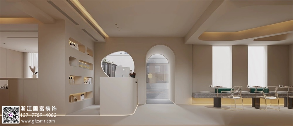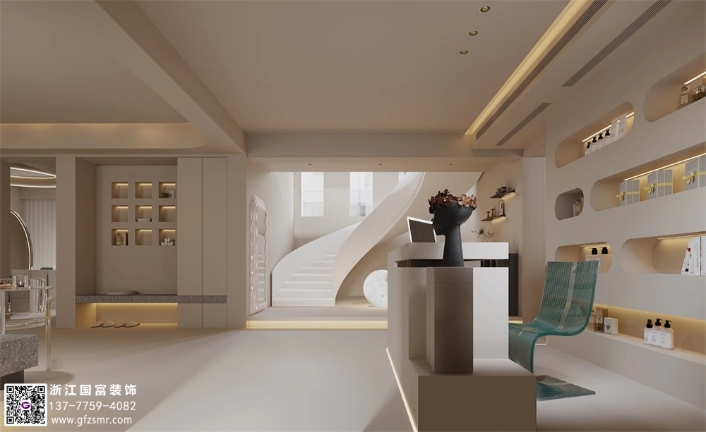 弧形曲線(xiàn)美容院裝修設計案例效果圖